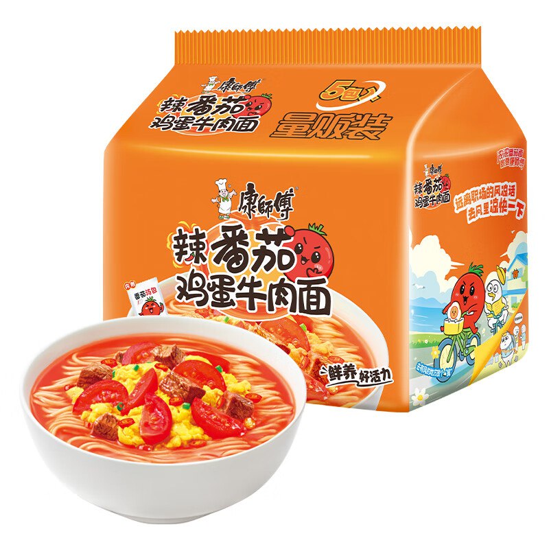 康师傅方便面经典辣番茄鸡蛋牛肉面110g×5五连包
