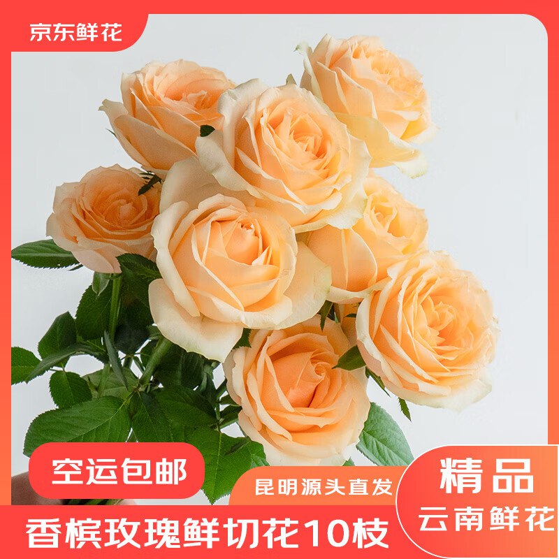 京东鲜花云南昆明基地鲜花直发香槟玫瑰10支【5.9】