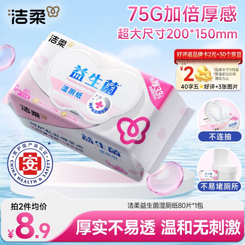 🎒 洁柔益生菌湿厕纸80抽