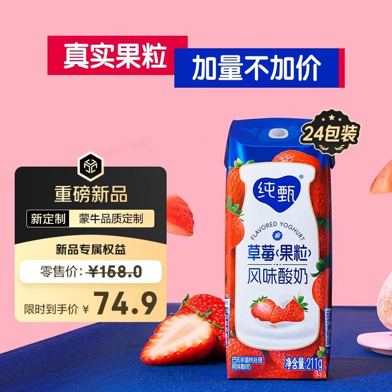 蒙牛 纯甄草莓果粒风味酸奶211g×24盒,凑99-50,200-20后,30+,需要的看看