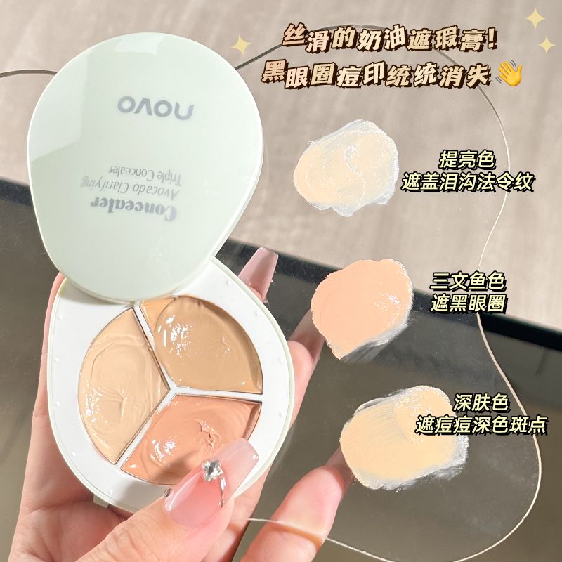 NOVO三色遮瑕膏遮盖黑眼圈痘印暗沉脸部斑点学生修容提亮遮瑕盘女