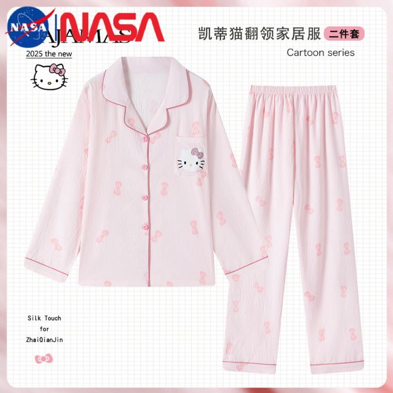 HelloKitty蝴蝶结睡衣女春秋长袖长裤学生宿舍云朵棉美少女家居服