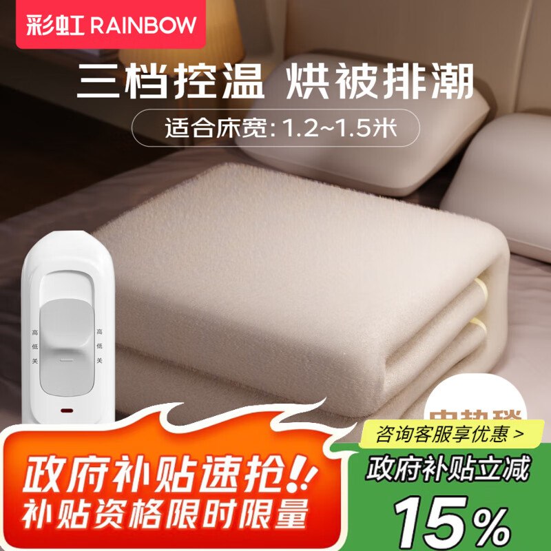 彩虹 双面发热电热毯 1.5×1.2米